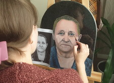 Первый этап работы – компьютерная обработка. Мы заменили одежду усопшей; удалили с головы платок, открыв полностью голову покойной; а также провели детальную доработку её лица: удалили большое количество морщин, сохранив черты.