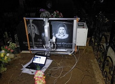 Гравировка портрета и надписи на установленном памятнике на Щербинском кладбище
