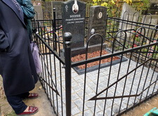По приезду на кладбище мы осмотрели место захоронения и промерили необходимые для изготовления парного памятника параметры находящегося на могиле надгробья.
